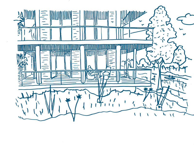 Werf ligt op een bijzondere plek: precies tussen het groene Oegstgeest en het energieke Leiden in. Op de oevers van de nieuwe Binnenrijn, met Park Landskroon aan de overkant en het Leiden Bio Science Park om de hoek.